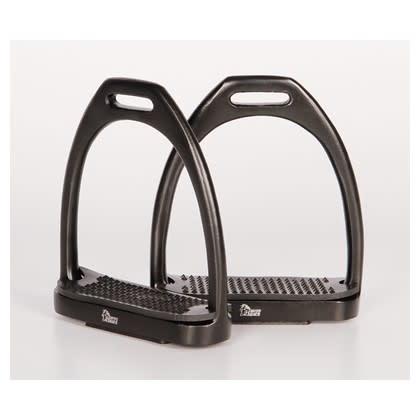 Beugels vervaardigd van hoogwaardig aluminium. Zorgt voor comfort en stabiliteit voor paard en ruiter. incl. rechte, elastische zooltjes (zwart).