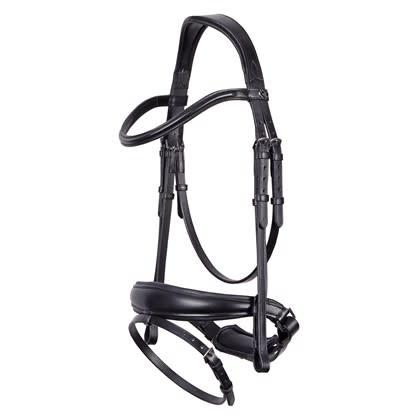 Lederen hoofdstel met zacht onderlegd gecombineerde neusriem en zacht onderlegd anatomisch kopstuk.