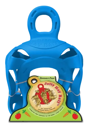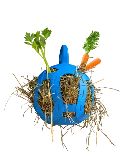 Vul de Jolly Hay Ball met hooi en vul de kleinere openingen met lekkers zoals appel of wortel. Zo is je paard wel even zoet.