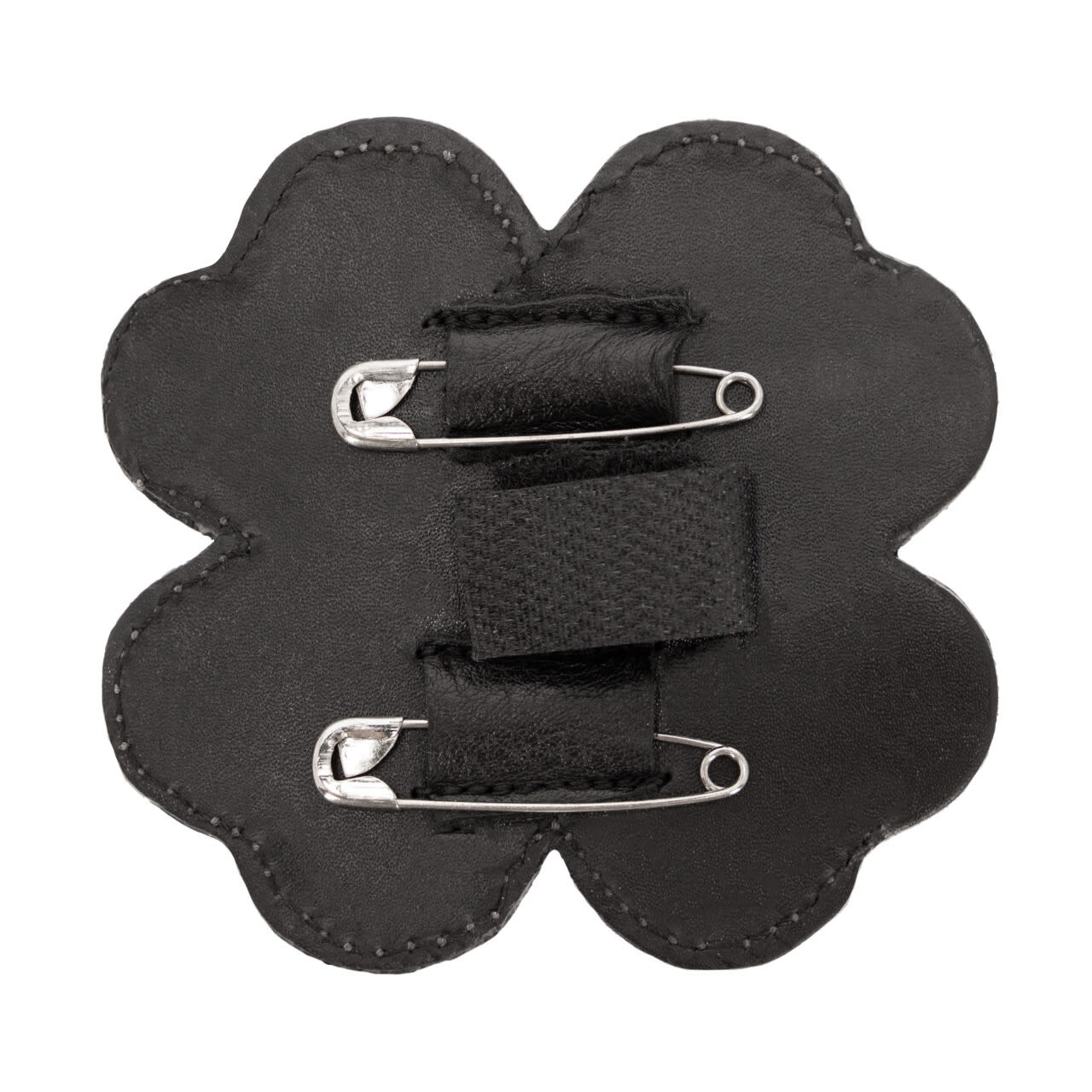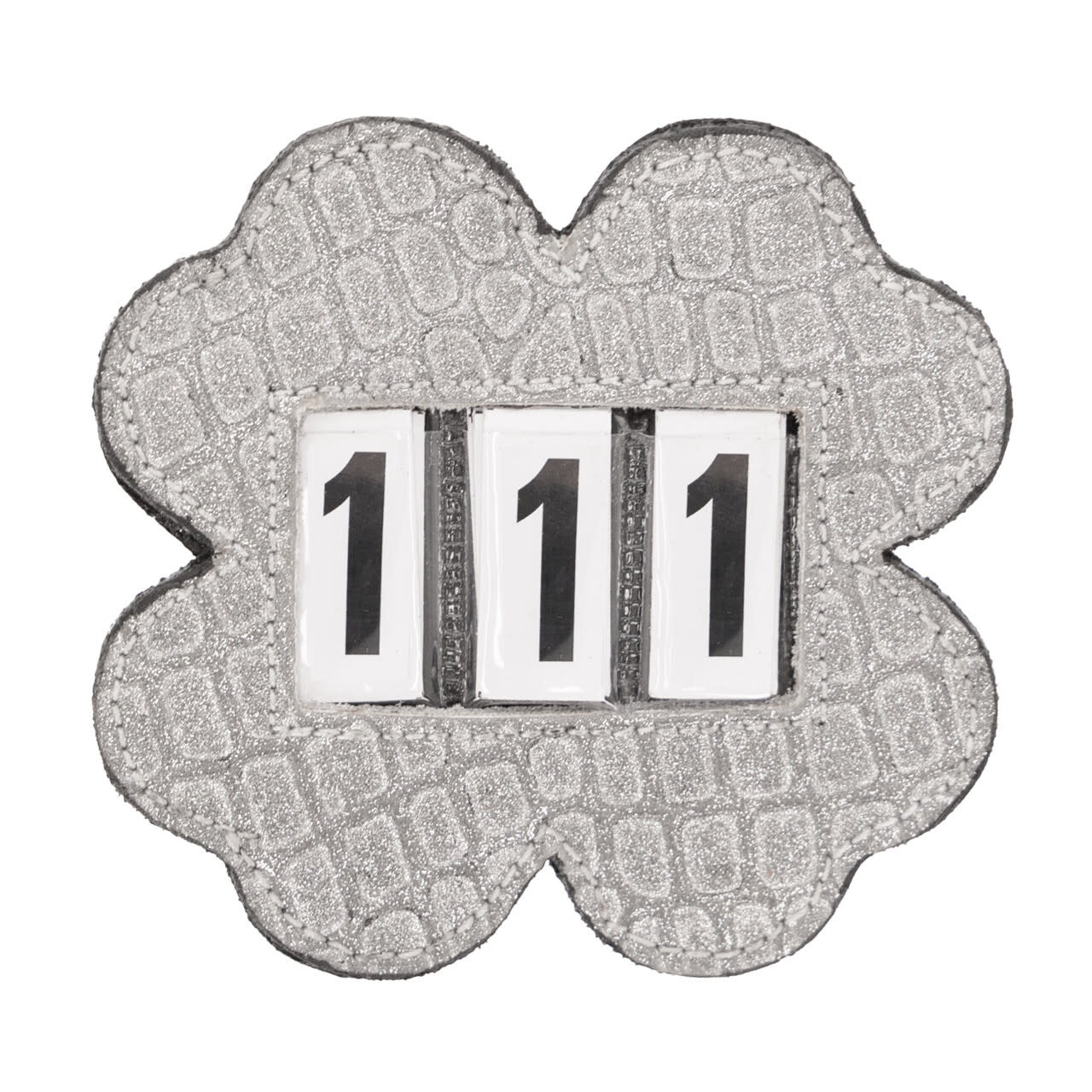 Nummerhouder in de vorm van een klavertje is voorzien van subtiele glitters. Deze nummerhouder kan eenvoudig worden bevestigd aan het hoofdstel of zadeldekje met veiligheidsspelden of klittenband. De verwisselbare nummertjes worden meegeleverd.