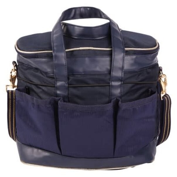 Luxe poetstas met deksel met ritssluiting, diverse zakjes en vakjes en met een glitter piping.