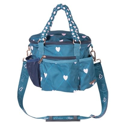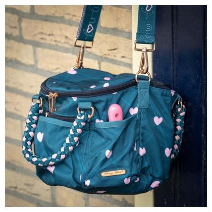 Luxe poetstas met deksel met ritssluiting, diverse zakjes en vakjes, allover print en leuke handvatten.