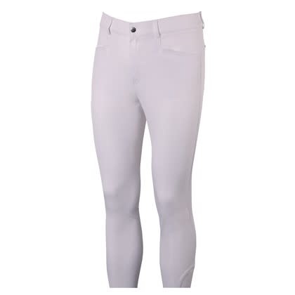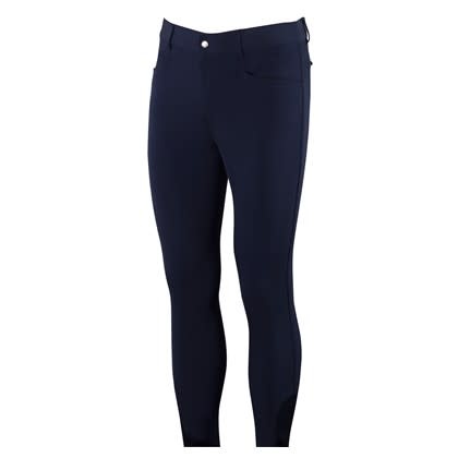 Rijbroek met twee steekzakken aan de voorzijde en twee zakken met ritssluiting op de kont, rondgenaaid zitvlak met siliconen print kniestukken, flexlegs