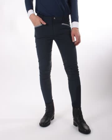 Rijbroek met een sportief grip patroon op de binnenkant van de benen. Rijbroek Olav is voorzien van twee steekzakken aan de voorkant en twee zakken met knopen op de achterkant voor een stoere uitstraling. Het model op de studiofoto’s is 195 cm lang en draagt maat 46. Wil je weten welke maat het beste is voor jou? Bekijk dan de maattabel. Specificaties Stofsamenstelling: 90 % polyester, 10% elastaan Sportieve rijbroek voor heren Deze broek is gemaakt van ademende en comfortabele stof Medium beengrip voor extra grip in het zadel Deze broek heeft een middelhoge taille Voorzien van steekzakken aan de voor- en achterkant Deze rijbroek is perfect om het hele jaar door te dragen Machinewasbaar op 30 graden. Niet drogen in de droger. Gebruik bij voorkeur geen wasverzachter.