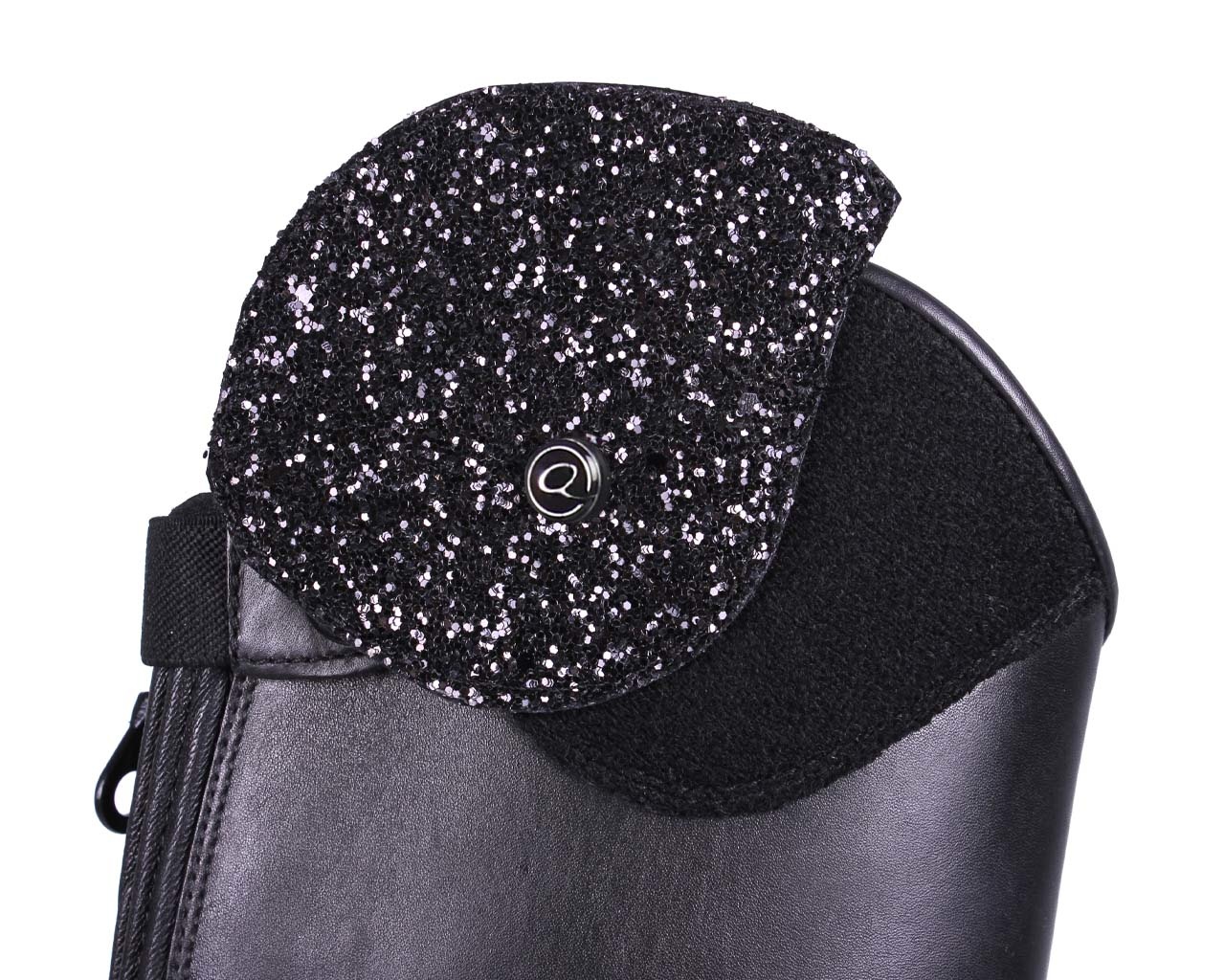 Pas deze laars aan jouw stijl aan! De bovenkant is voorzien van klittenband, waardoor je de top kan verwisselen. Rijlaars Romy wordt standaard geleverd met een glitterende top. De andere tops zijn apart verkrijgbaar. De laars is voorzien van een rits met elastische inzet aan de achterkant en elastische veters aan de voorkant.