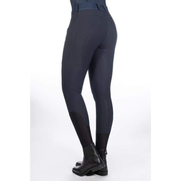 De Aruba rijlegging met siliconen zitvlak zorgt voor een goede ondersteuning in het zadel. De brede manchetten zijn gemaakt van stretchmateriaal en voorzien van riemlussen. Decoratieve borduursels op de manchetten geven de paardrijlegging bovendien een sportief, elegant tintje, terwijl de mesh-beenmanchetten het draagcomfort verhogen, vooral in de zomer. De Aruba paardrijlegging is voorzien van twee zijzakken die bijvoorbeeld gebruikt kunnen worden als gsm-zakje. Op de zijkant is een klein HKM Selection logo bevestigd.