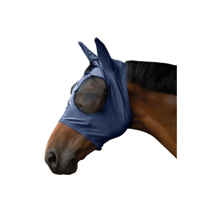 Het elastische vliegenmasker sluit dankzij de hoge elasticiteit nauw aan op het hoofd van het paard. Het ooggebied is bedekt met gaasstof, waardoor een veilige afstand tot de ogen van het paard wordt gewaarborgd. Dit beschermt de gevoelige oogzone tegen vliegen en insecten. Het vliegenmasker sluit onder het hoofd van het paard met een ritssluiting die vastgezet wordt met een drukknoop. Dit zorgt ervoor dat het vliegenmasker stevig op het paard blijft zitten. Een opening bij de voorlok optimaliseert de pasvorm nog verder. Het elastische vliegenmasker biedt een alternatief voor loszittende vliegenmaskers met klittenbandsluiting, die gemakkelijk van het hoofd van het paard kunnen glijden en bij sommige paarden zelfs schuurplekken kunnen veroorzaken.